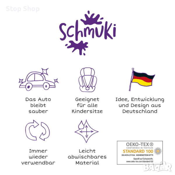 Поставете детето в Schmuki на детската седалка ... и колата остава чиста