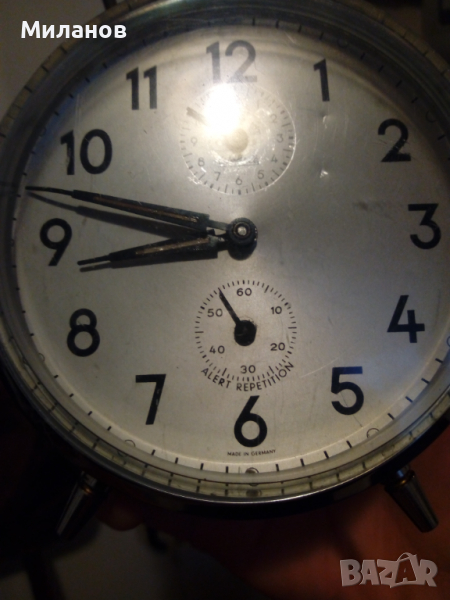 Антикварен механичен немски будилник,настолен часовник → Обява 36210397