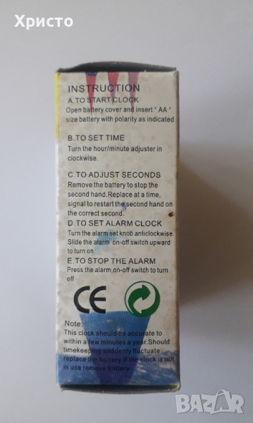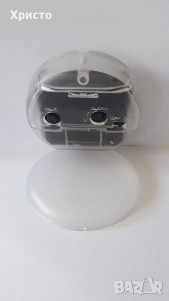Продавам часовник будилник кварцов за маса и път уникален и красив, в оригиналната си кутия. Прозрачно матово бял, сгъваем и подходящ за пътувания. Работи с 1 брой батерия 1,5 волта, АА, която не е включена в цената, но срещу 0,65 лв още, мога да я добавя , диаметър Ф 7,8 см. Чисто нов, не е ползван, имам няколко бройки.