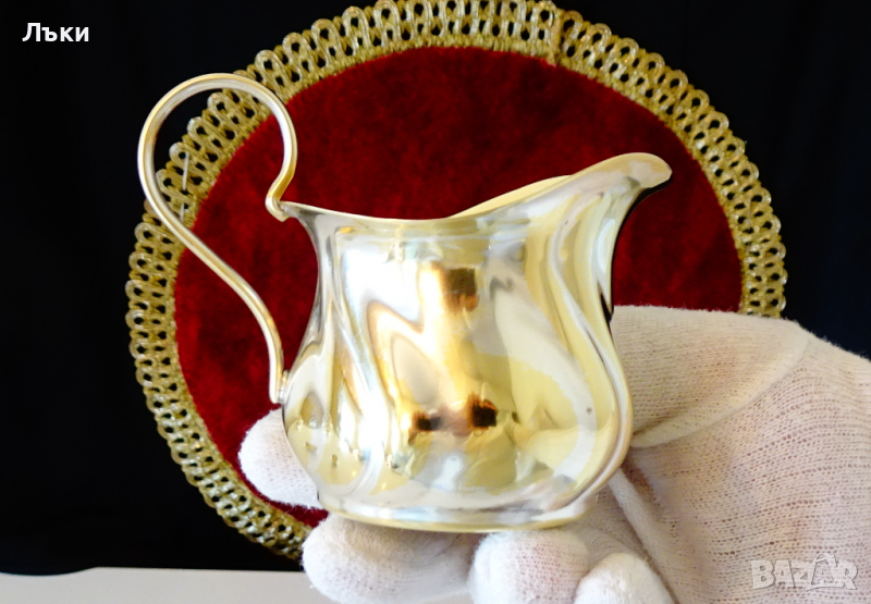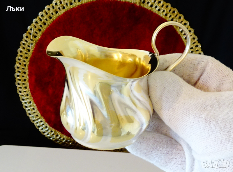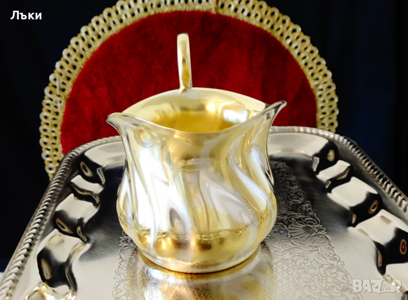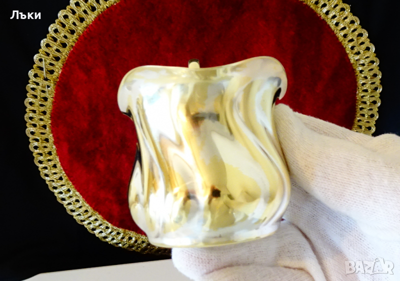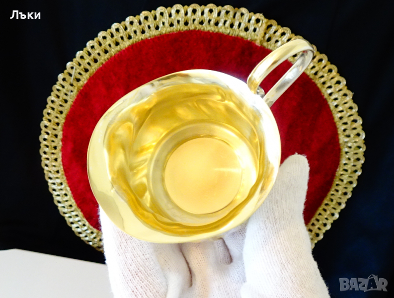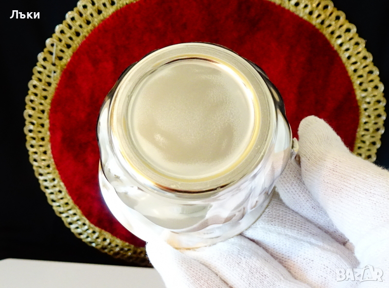 качествен бронз,посребрена с висока проба сребро.Декорирана с красив релеф.Височина