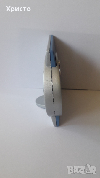 Продавам часовник будилник дизайнерски, уникален, кварцов за маса, в оригиналната си кутия. Работи с 1 брой батерия AG10 която не е включена в цената. Размери : 13х10.4 cm, сребристо и екзотично синьо пластмасово тяло, чисто нов, не е ползван, имам няколко бройки.