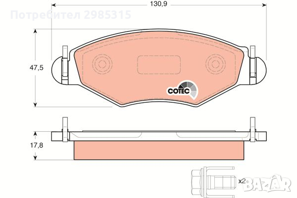 арт номер GDB1500- TRW Място на монтаж: Отпред | Широчина: 130.9 mm | Височина: 47.5 mm | Дебелина: 17.8 mm | Позиция на монтаж: Отпред | Спирачна система: BOSCH | Може ли да се ползва с датчик за износване: Не | Датчик за износване: Не