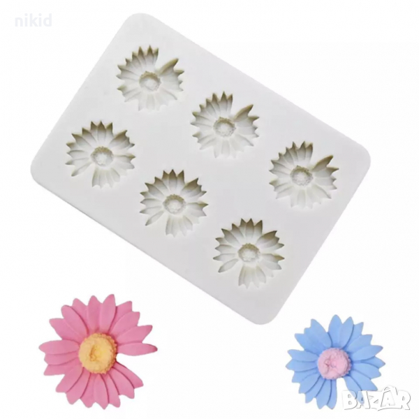 6 маргаритки маргаритка цветя силиконов молд форма фондан шоколад смола гипс декор → Обява 36221027