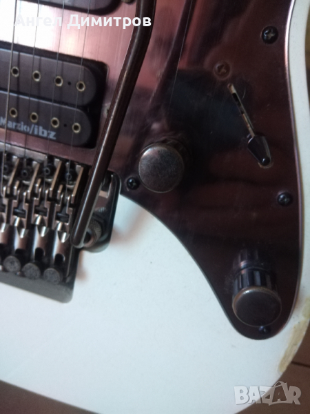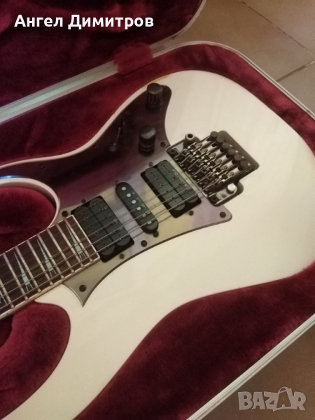 Истински японски боец от Prestige серията на компанията.Страхотен инструмент! Цвят White Pearl Metallic. Китарата е с тремоло Edge Zero и е със стабилизираща система ZPS3. Грифът е Wizard Prestige, тънък, бърз и удобен.Дребни забележки по тялото, нормални за годините. Консервирани са, но не от мен. Така я купих преди време. По никакъв начин не влиаят на невероятния звук.Китарата се продава с оригинален куфар. При желание мога да добавя стойка за китара Ibanez-20 лв. Подарък-колан Ibanez.Цената е твърда и е 2000лв.