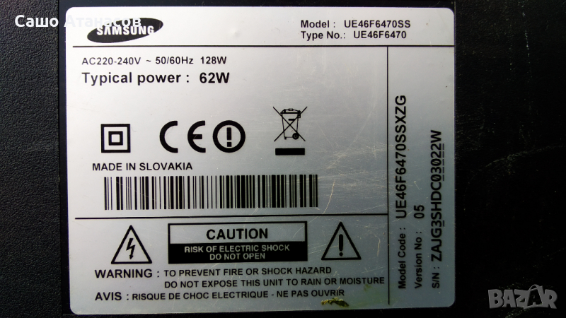 SAMSUNG UE46F6470SS със счупена матрица ,BN44-00623B ,BN41-01958A ,BN41-02069A ,CY-HF460CSLV2H
