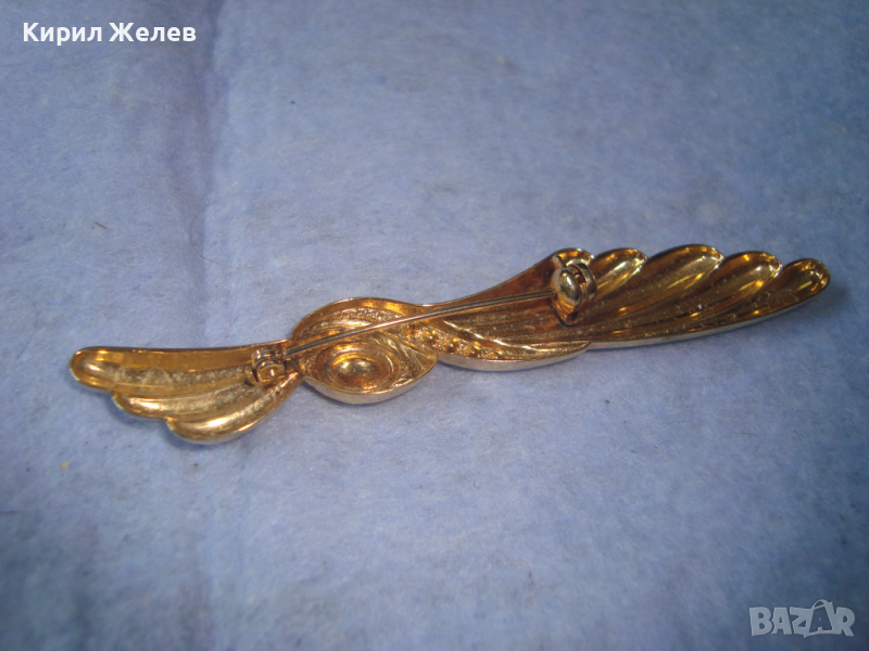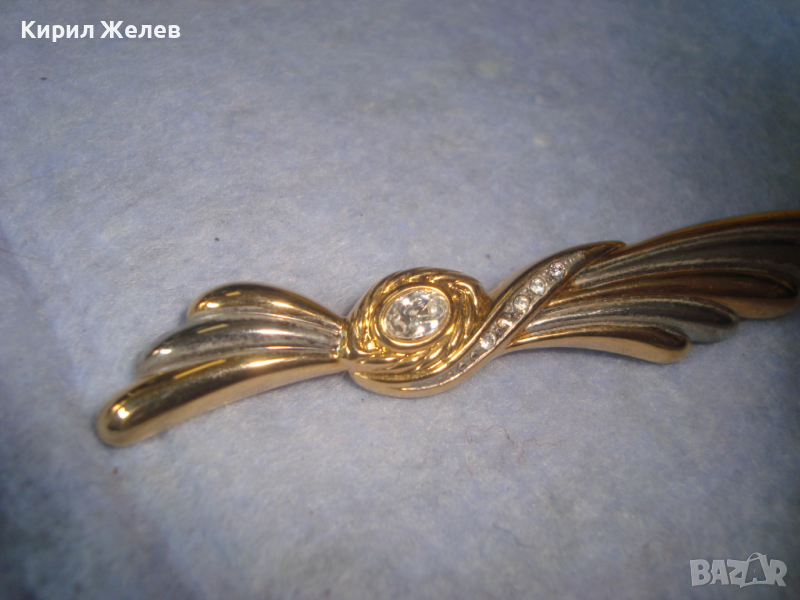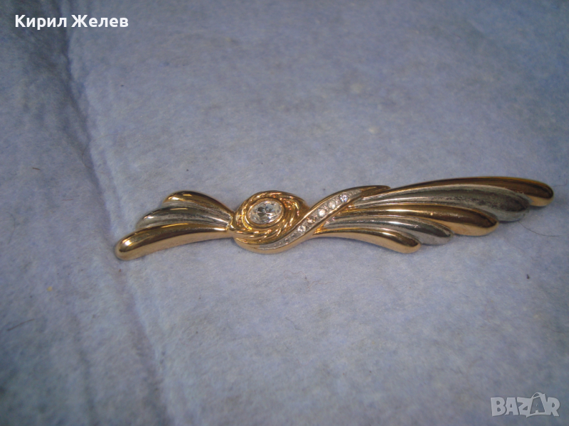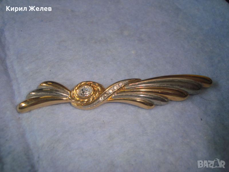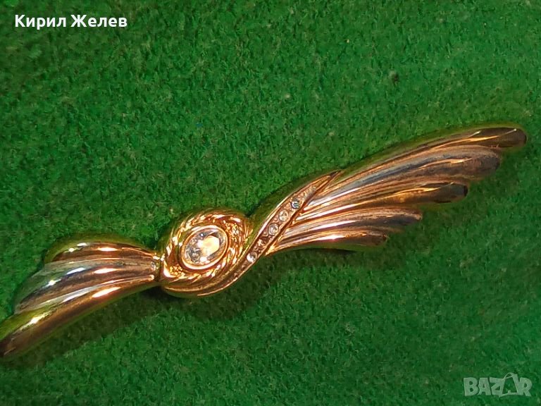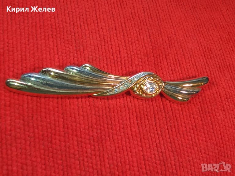 ПОЗЛАТЕНА БРОНЗОВА СТАРА АРТ ДЕКО СКЪПОЦЕННА БРОШКА с ГОЛЯМ ФАСЕТИРАН ЦИРКОН 8713