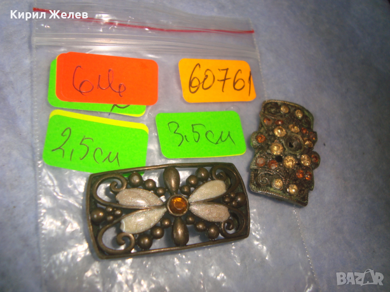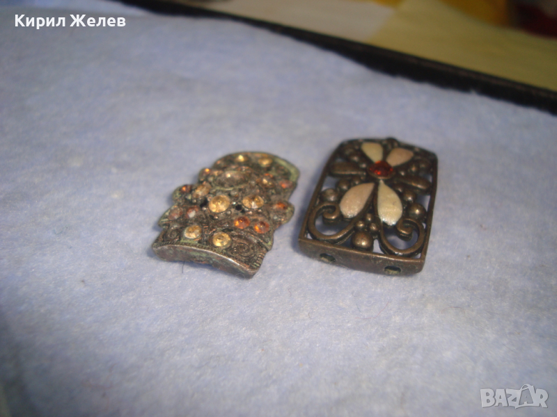 2 ЕЛЕМЕНТА от СТАРИ ГРИВНИ МЕСИНГ с ИНКРУСТРАНИ КРИСТАЛИ 60761