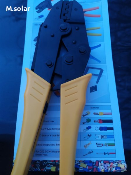 Клещи за кримпване на MC4 конектори 2.5 ÷ 6 мм² и кабелни обувки., снимка 1 - Клещи - 36224744 Клещи за кримпване на MC4 конектори 2.5 ÷ 6 мм² и кабелни обувки., снимка 2 - Клещи - 36224744 Клещи за кримпване на MC4 конектори 2.5 ÷ 6 мм² и кабелни обувки., снимка 3 - Клещи - 36224744 Клещи за кримпване на MC4 конектори 2.5 ÷ 6 мм² и кабелни обувки., снимка 4 - Клещи - 36224744 1/4