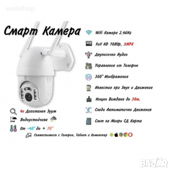 4. Снабдена с двупосочен интерком (аудио), камерата е с вграден в нея микрофон и високоговорител.