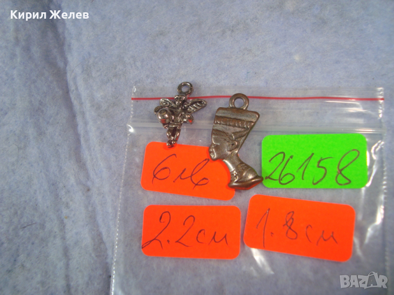 2 МИНИАТЮРНИ ФИГУРАЛНИ ПОСРЕБРЕНИ МЕДНИ СТАРИ МЕДАЛЬОНА НЕФЕРТИТИ и ФЕЯ 26158
