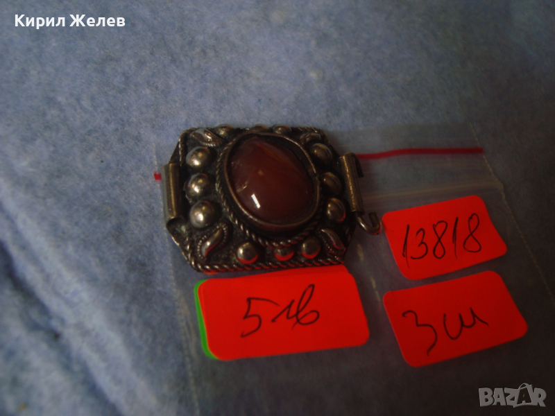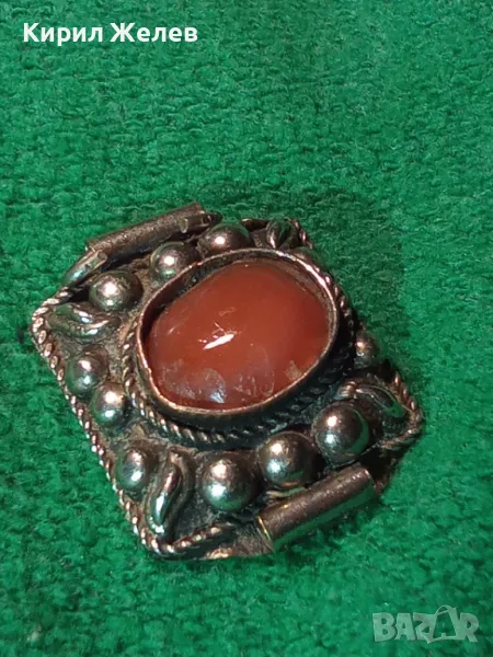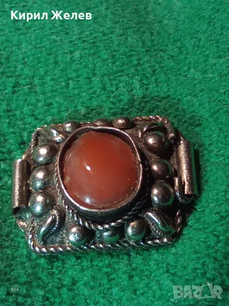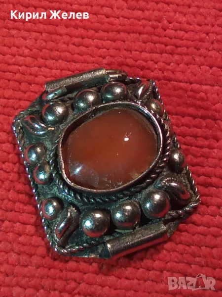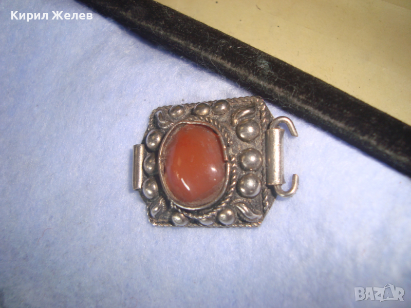 ЕЛЕМЕНТ от СТАРА БРОНЗОВА ПОСРЕБРЕНА ОРИЕНТАЛСКА ЕТНОГРАФСКА ГРИВНА с НАТУРАЛЕН КАРНЕОЛ 13818
