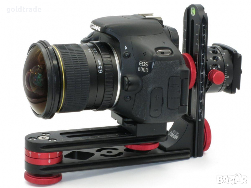Панорамната флуидна глава се състои от три независимо регулируеми рамена, които позволяват на обектива да се позиционира във всички посоки по оста на въртене за VR изображения.