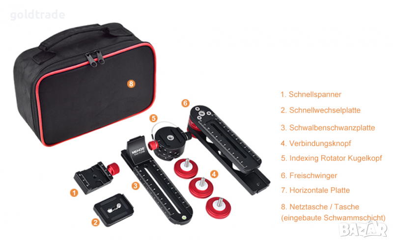Съвместим със стандарта Arca-Swiss, включително Arca Swiss, RRS, Kirk, Wimberley, Markins, Sunwayfoto, Kangrinpoche, Benro, Sirui и др.