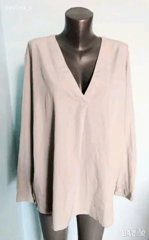 3️⃣. Колаж / 2XL / 4XL - "Coop". Цената е крайна 29,99лв / 15 евро. Луксозна ефирна туника с шпиц деколте, дълги ръкави и копчета от естествен седеф - Абалон. Цветът е светло сив, неутрален и подхожда на всичко, моделът се вижда добре, изключително изтънчена дреха. Уникална, всичко е съобразено с размера. Материята е с еластичност и покрива няколко размера до 4XL.