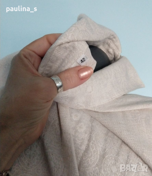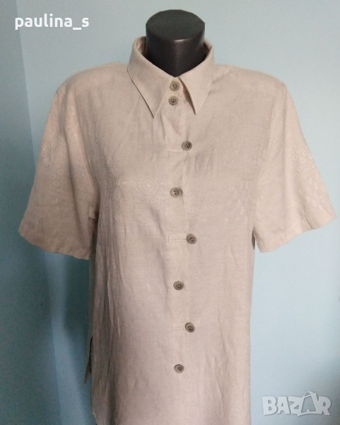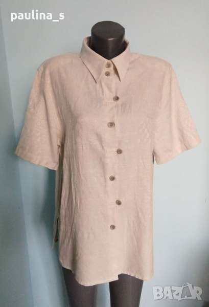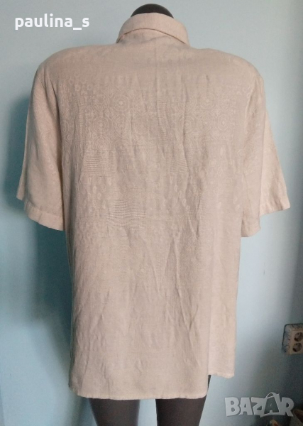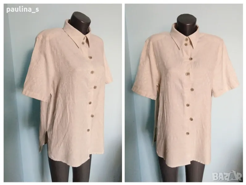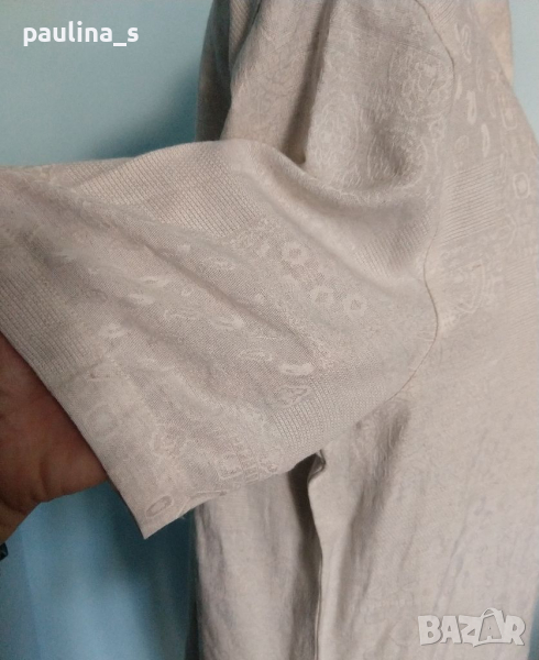 1️⃣. Колаж / XL / 2XL / Цената е крайна 29,99лв / 15 евро. Луксозна ленена туника с оригинално закопчаване и релефен плат с контрастен флорален принт. Цветът е бледо розов, платът е с релефен флорален принт. Раменете са с подплънки, заподчертаване на силуета. Много скъпарска дреха, изпипана и елегантна, има и резервно копче.