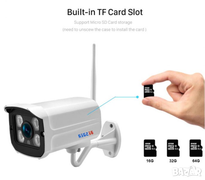Ако желаете MicroSD карта от 64 GB за запис в камерата, то се доплаща + 24.99 лв. / 32ГБ + 14.99 лв. / 128ГБ + 44.99 лв.