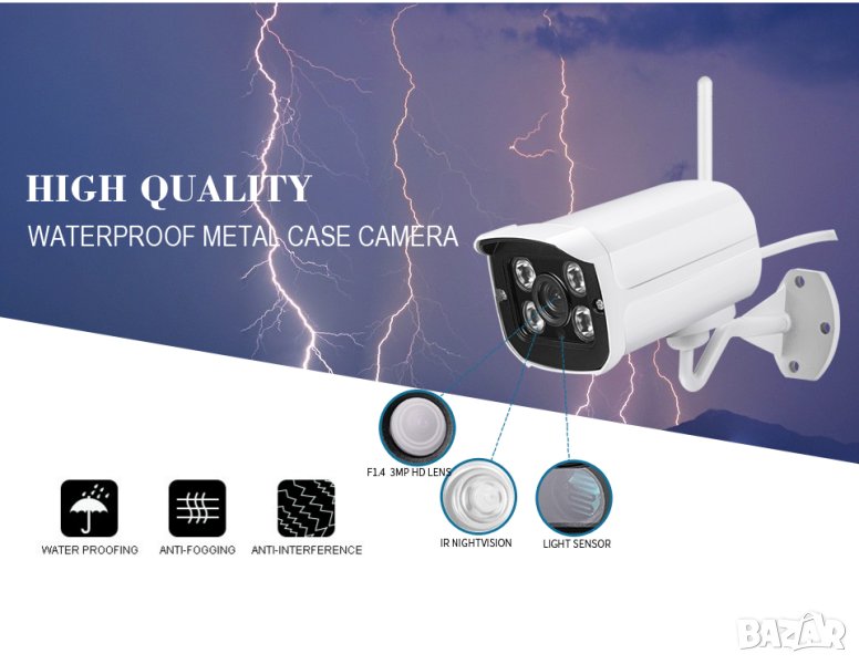 Далекобойна Ultra HD 2~5MPx IR-CUT Метална Водоустойчива H.265+ WI-FI IP Камера IP66 Защита mSD Слот