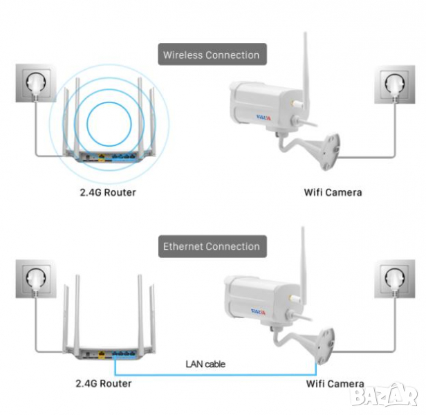 С изключително лесна инсталация, чрез приложената инструкция на Български език за първоначалното конфигуриране на камерата и някои други особенности. Всеки обикновен потребител може се справи сам с инсталирането на камерите!