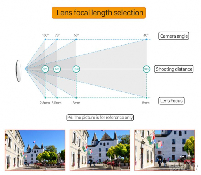 Обектив: 3.6мм (за нормален ъгъл на виждане) или 6мм (за далечно виждане)