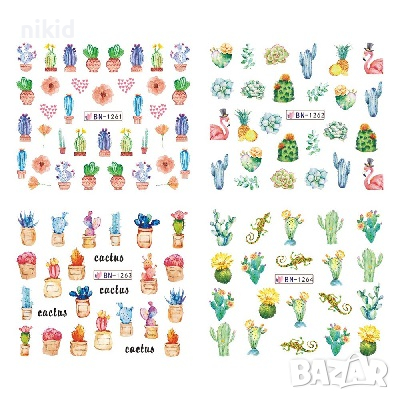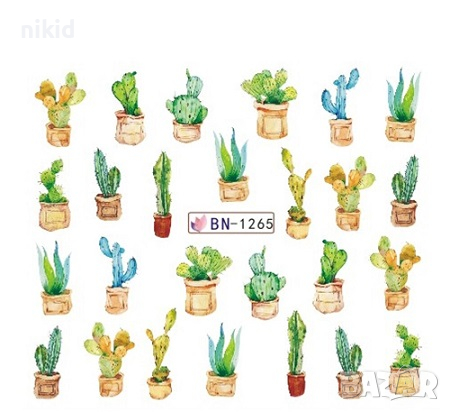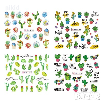 лист 12 в 1 вида кактус кактуси слайдер татос ваденки водни стикери за нокти маникюр → Обява 36227084