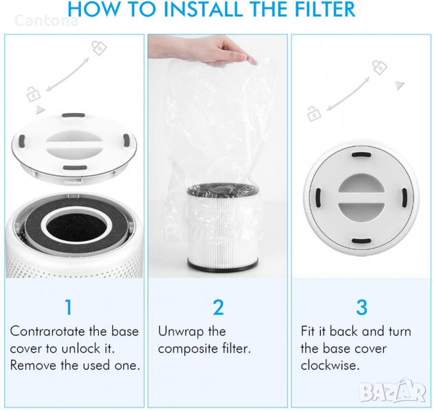 - Съвети: Моля, отстранете новата найлонова торбичка от филтъра, преди да използвате пречиствателя на въздуха.