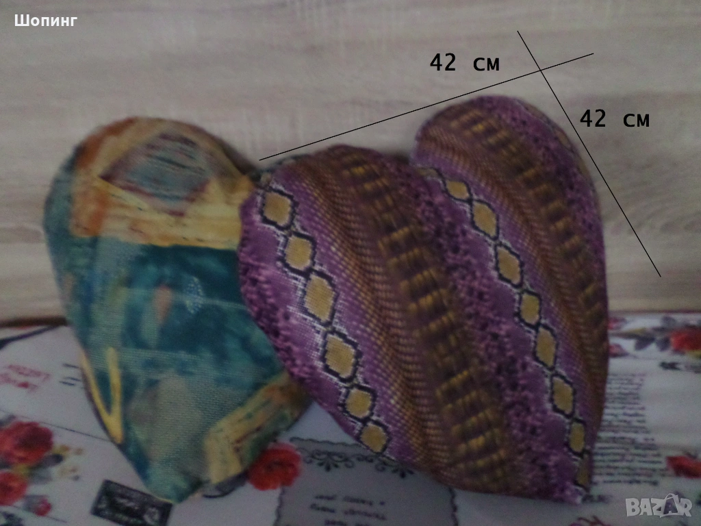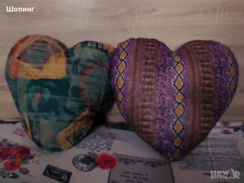 1. Във формата на сърце в две различни разцветки. Дължина 42 см, ширина 42 см. Продават се с пълнежа и калъфката. Сваляеми калъфки!