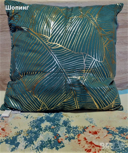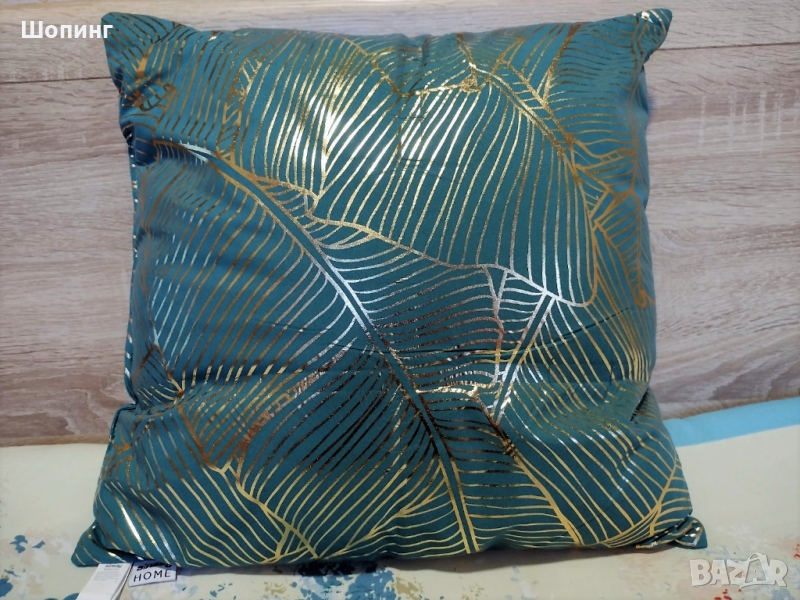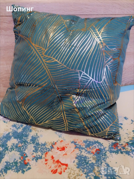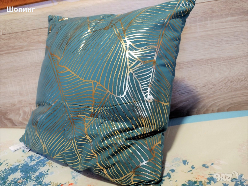 2. Чисто нова, голяма, красива, ефектна, пухкава възглавница. Цвят - тюркоаз и златисто. Цветът е повече зелен, не е син. Размери: 45/45 см. - 15 евро