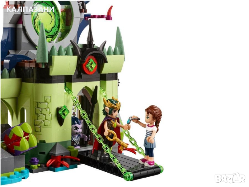 ЛЕГО Елфи 41188 - Бягство от крепостта на Краля на Гоблините. Внимавайте, Кралят на гоблините е пленил Софи Джонс в крепостта си! Той чака Емили Джонс да се опита да я освободи, за да може да открадне амулета й и да го използва, за да отвори портала към човешкия свят! Хвърлете куката на Емили на второто ниво на крепостта и й помогнете да се промъкне покрай гоблина пазач, който охранява моста. Ще успее ли Емили да спаси Софи от клетката, която виси над различни капани, и да спре Краля на гоблините? Само вие можете да решите...Комплектът включва 695 ЛЕГО елементи.