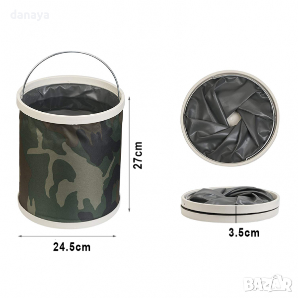 2795 Сгъваема къмпинг кофа за вода камуфлажна с калъф 11 Литра