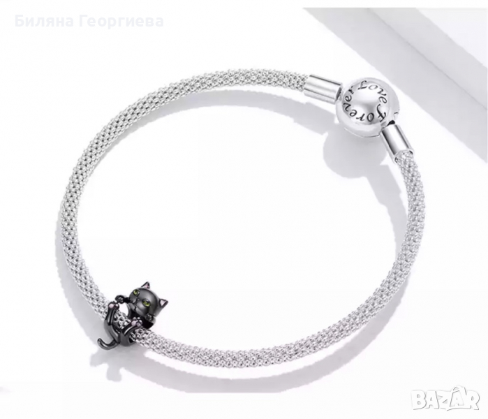 Сребърен талисман за гривна Пандора Black cat, модел 047 → Обява 36232543