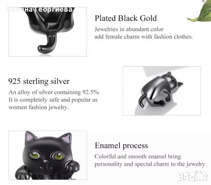 Сребърен талисман за гривна Пандора Black cat, модел 047, снимка 1 - Гривни - 36232543 Сребърен талисман за гривна Пандора Black cat, модел 047, снимка 2 - Гривни - 36232543 Сребърен талисман за гривна Пандора Black cat, модел 047, снимка 3 - Гривни - 36232543 Сребърен талисман за гривна Пандора Black cat, модел 047, снимка 4 - Гривни - 36232543 Сребърен талисман за гривна Пандора Black cat, модел 047, снимка 5 - Гривни - 36232543 1/5