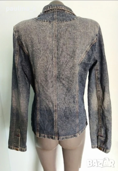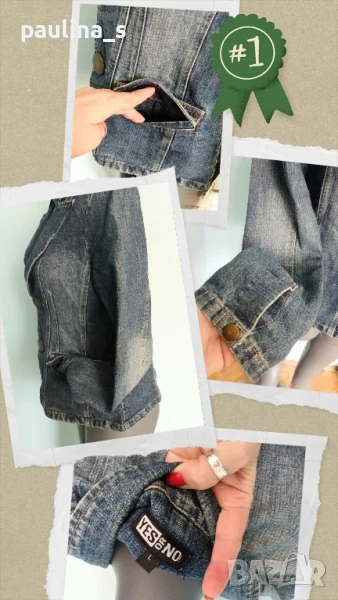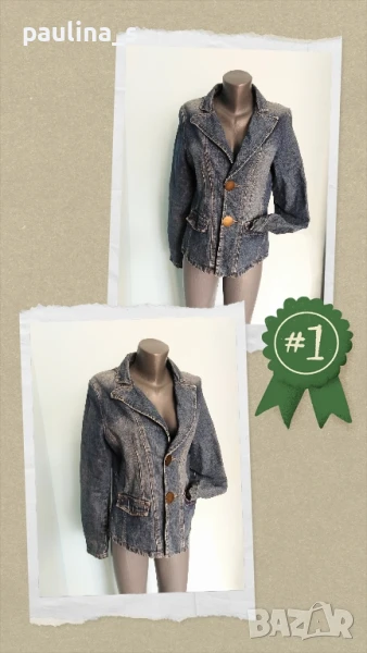 4️⃣. Колаж / M / L - "Yes or no". Цената е крайна 19,99лв / 10 евро. Дънково сако с избелващ ефект и големи копчета. Моделът е втален, елегантен и подхожда на всичко. Ръкавите са издължени с копчета, за да се носят подгънати навън. Без дефекти и етикет, като ново.