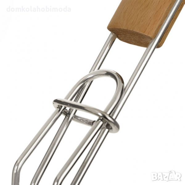 Притежава дръжка с дървен край дължина 25 сантиметра.На дръжката има халка която е да фиксира двете дръжки за да не се отвори сама скарата .