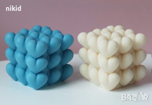 3D Кубче сърца сърце buble силиконов молд форма фондан гипс свещ шоколад → Обява 36239963