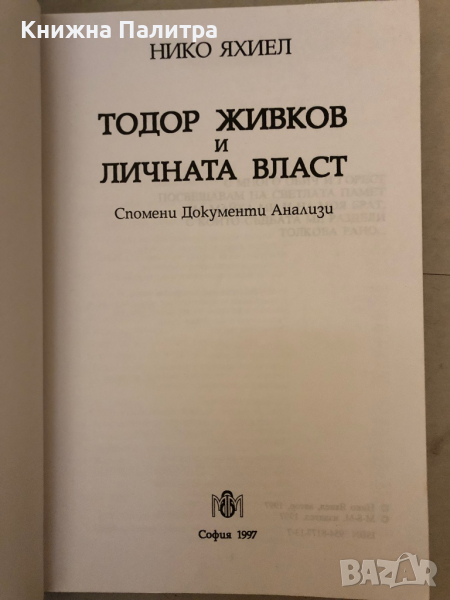 Тодор Живков и личната власт -Нико Яхиел → Обява 36241768