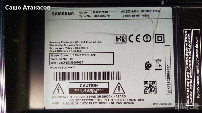 Модули от телевизор SAMSUNG UE55K6379SU със счупена матрица (панел CY-VK055BGLV1H )