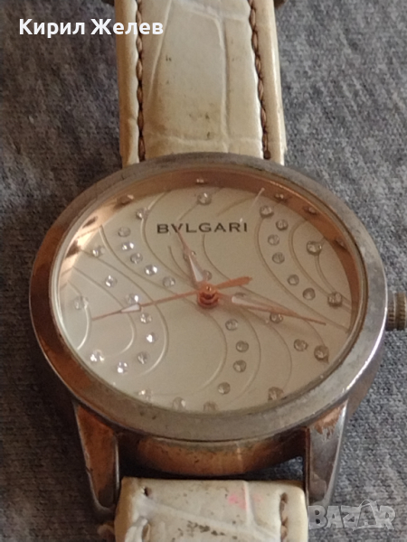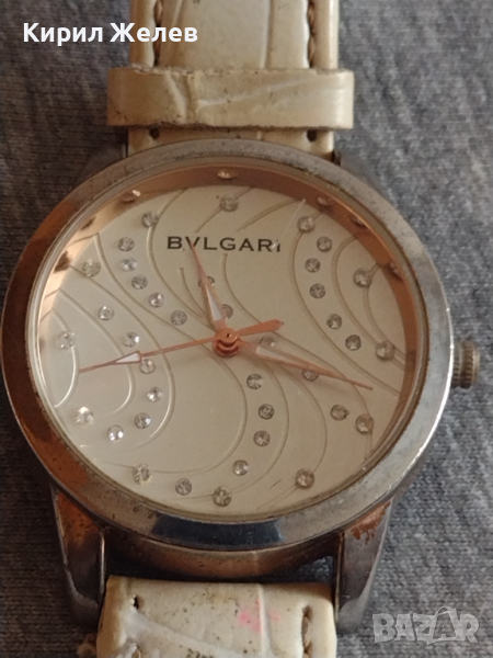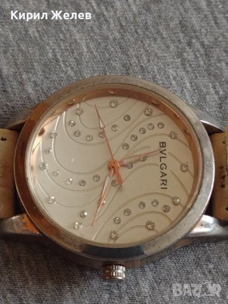 Фешън дамски часовник BVLGARI QUARTZ с кристали Сваровски кожена каишка много красив стилен - 21766
