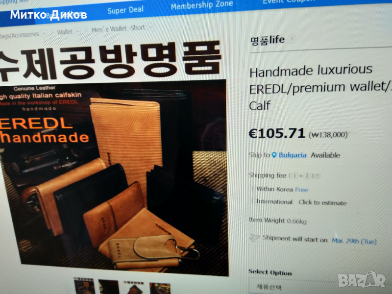 Портфейл EREDL италински телешки бокс -ръчна изработка естествена кожа 125х95мм допълнително калъвче-хванато с болтче-вижте фотос за цената реална като моята е по-ниска много-като ново е--изпращам по еконт-по спиди