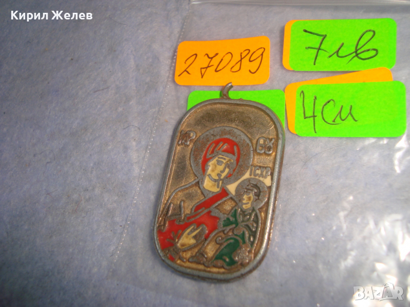 СТАРА МЕТАЛНА ГРЪЦКА ДВУСТРАННА ИКОНКА ВИСУЛКА СУВЕНИР 27089
