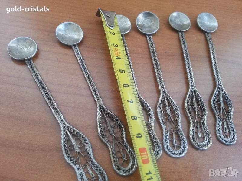 Сребърни или посребрени лъжички за кафе филигран монетите са сребърни изцяло ръчна изработка сервиз комплект сет лот ретро арт декор винтидж колекция стари антикварни предмети обзавеждане за дома и семейството подходящи за подарък за ценители и колекционери