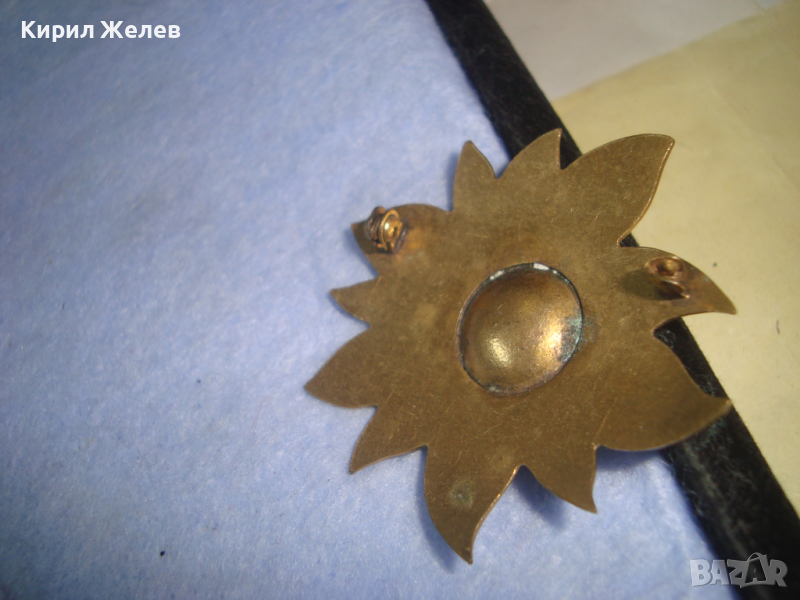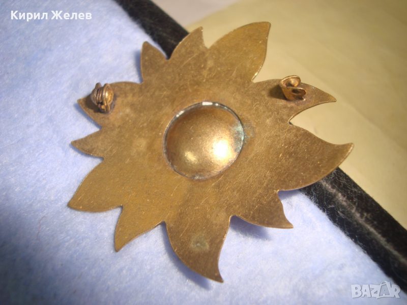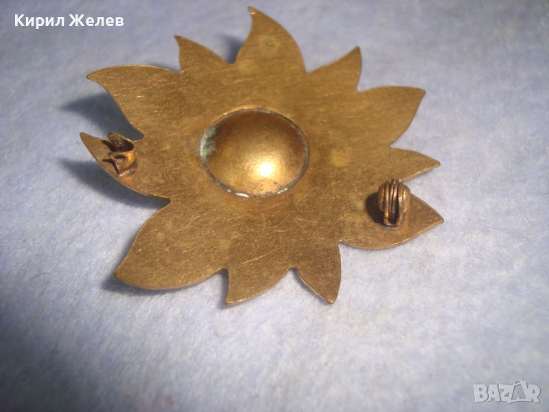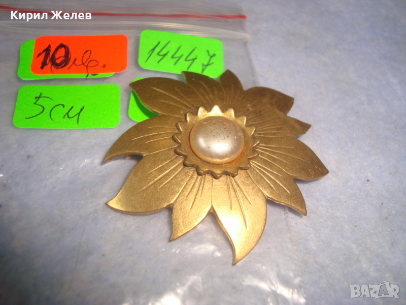 СТАРИННА БРОНЗОВА ПОЗЛАТЕНА РЪЧНО ГРАВИРАНА БРОШКА ЕДЕЛВАЙС с ПЕРЛА РЕТРО БИЖУ за КОЛЕКЦИЯ 14447
