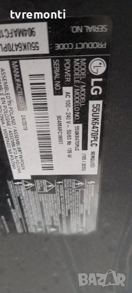 Power Supply Board EAX67865201(1.6) от LG 55UK6470PLC борда е гарантирано работещ Демонтиран от телевизор LG модел 55UK6470PLC със счупен дисплей HC550DGG AAGX3