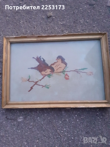 БГ гоблен в рамка с мотив-,,Две кадънки пеят,, → Обява 36254093