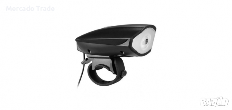 Фар за велосипед, Със сирена, USB, Акумулаторна батерия, Черен