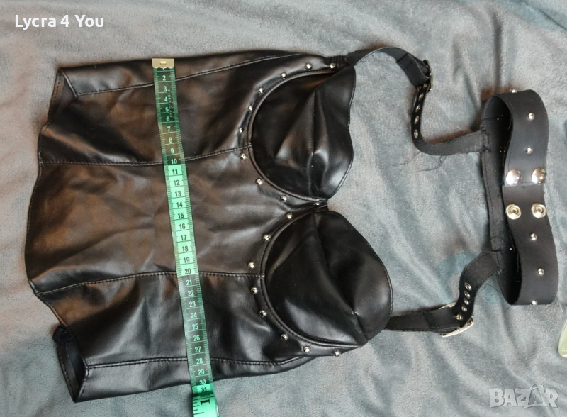 корсет на Leg Avenue S размер с оформени меки кожени чашки с метални капси под тях.