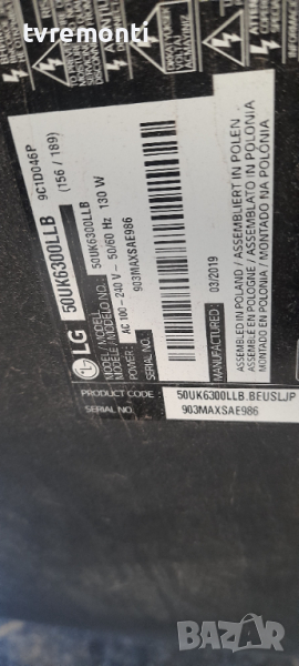 T-CON PT500GT01-1-C-7- LG 50UK6300LLB борда е гарантирано работещ Демонтиран от телевизор LG модел 50UK6300LLB със счупен дисплей HC500DQN-VKUL1-A14X