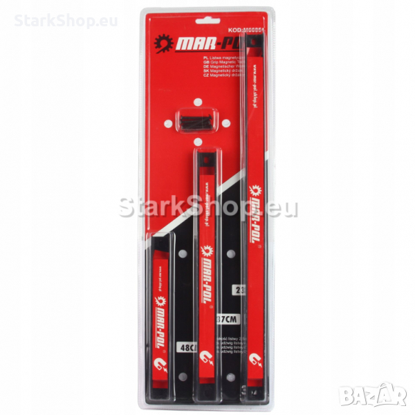 Комплект от три магнитни ленти MAR-POL, които осигуряват сигурно задържане за инструменти. Вграденият силен магнит осигурява широк спектър от приложения. Лентите са с прахово покритие, което осигурява изключително гладка и издръжлива повърхност, която предпазва от окисляване на метала т.е. корозия, химични и механични повреди.