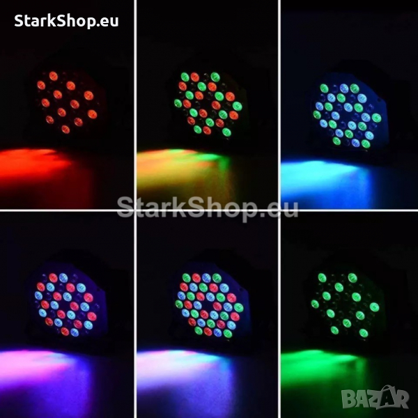 - Режим на управление: Auto, Sound, DMX512, Master-Slave.