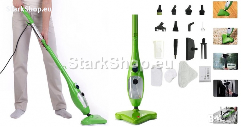 Парочистачка Steam Cleaner 12в1 с пара, почиства и дезинфекцира всякакви повърхности и подови настилки, без употреба на химикали и препарати. Лесно се превръща в мини пароструйка с турбо дюза с мека или твърда четкa, с него лесно можете да измиете огледалата и прозорците, парно гладене за освежаване на завеси, матраци и др. Силата на парата се регулира за постигане на оптимални резултати при различни повърхности. Замърсяванията лесно се отстраняват с помощта на микрофибърна кърпа, която абсорбира мръсотията, след което се изпира и отново е готова за употреба! Steam Cleaner има голям резервоар за вода – 400 мл., това помага цялото почистване да се извърши навъднъж, без да губите време за презареждане на вода.
