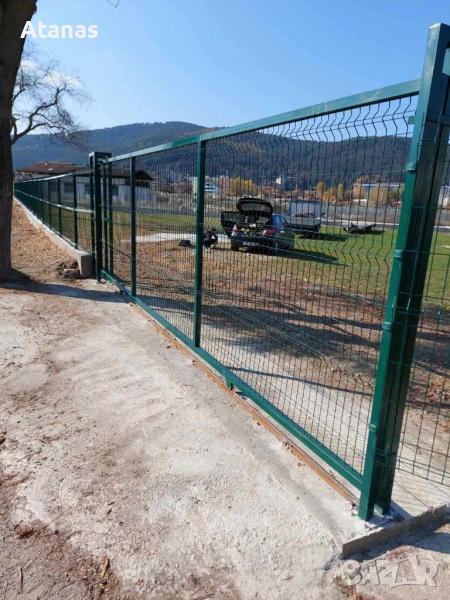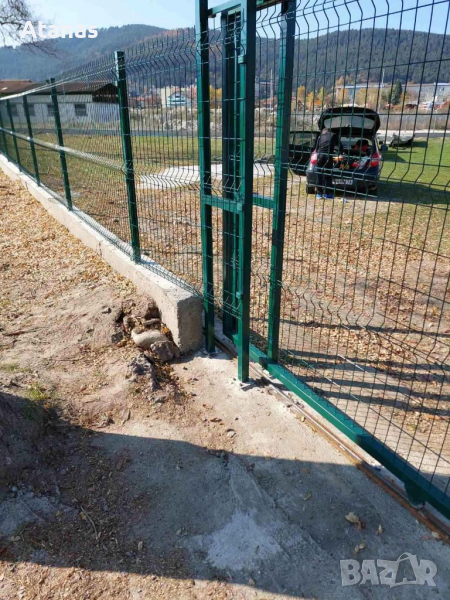 оградни пана, колове, врати, портали, плетена мрежа с декорация - жив плет.